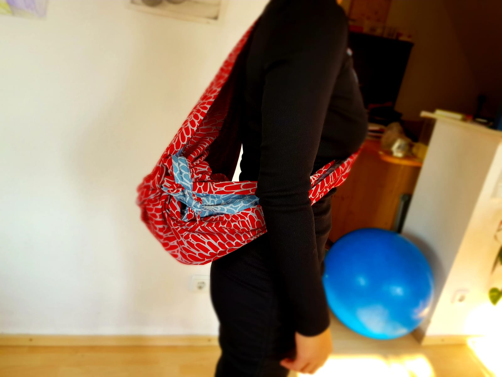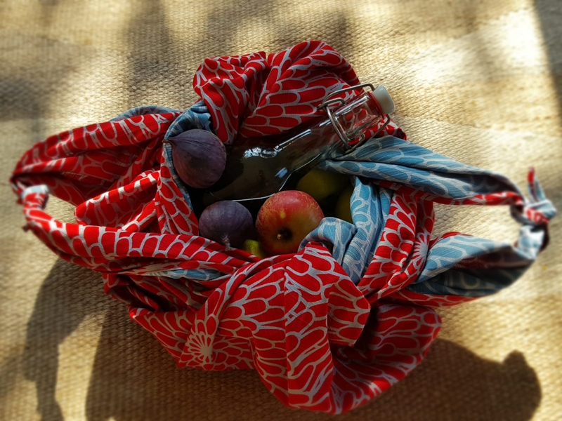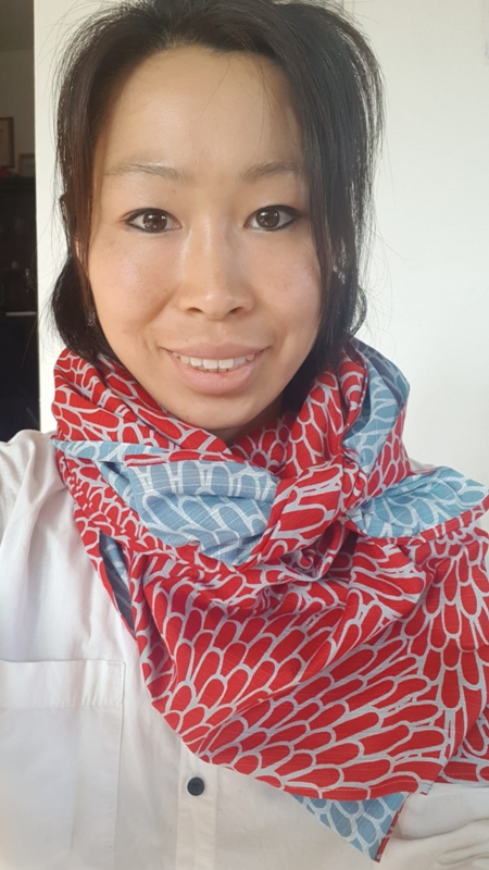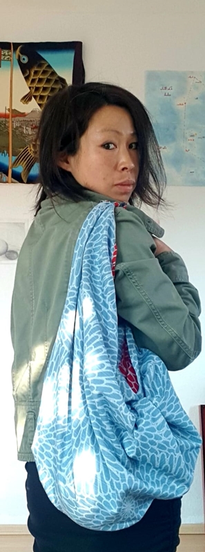 Morgens und Abends kann man Furoshiki als Schal wunderbar benutzen sowie als Maske im Laden!